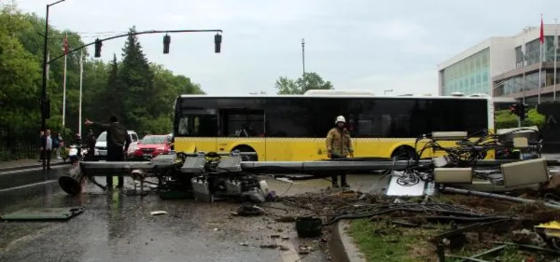 Alınan bilgiye göre, trafik ışıklarında bekleyen otomobile çarpmamak için manevra yapan otobüs şoförü yağmur nedeniyle kayganlaşan yolda duramayarak Kent Güvenlik Yönetim Sistemi kameralarının bulunduğu direğe çarptı.