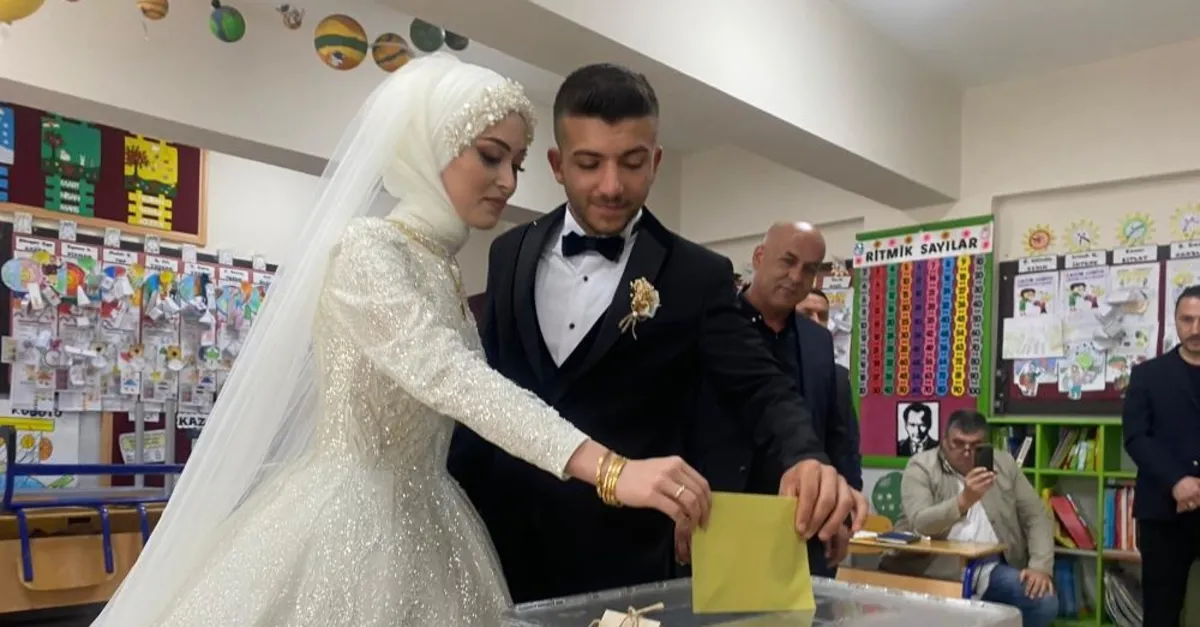 Damat İsmail Çoban, vatandaşlık görevini yerine getirdiklerini belirterek, "Seçim gününe denk gelmemesi için uğraştık nasip böyleymiş. Oyumuzu kullandık vatana millete hayırlı olsun" ifadelerinde bulundu. Çift, oylarını kullandıktan sonra nikah akitlerini gerçekleştirmek üzere yola çıktı.