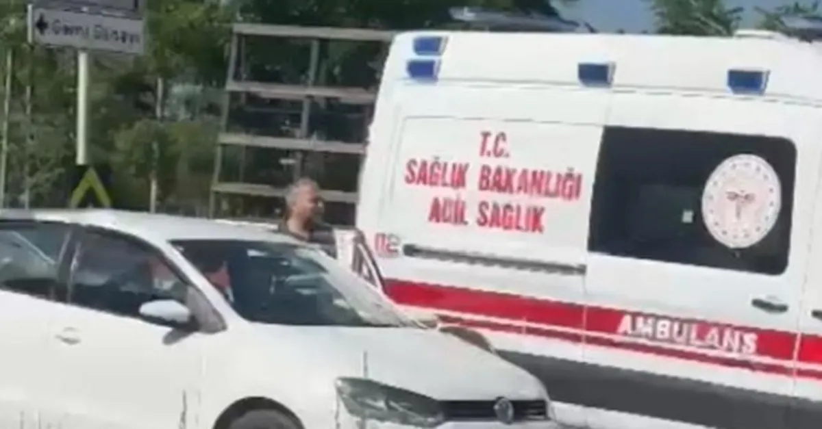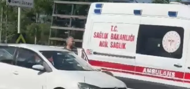 Otomobil sürücüsü ambulansta hasta olup olmadığını sordu. Ambulansın yan kapısını açan sağlık çalışanları ise araçta hastanın olduğunu söyledi.
