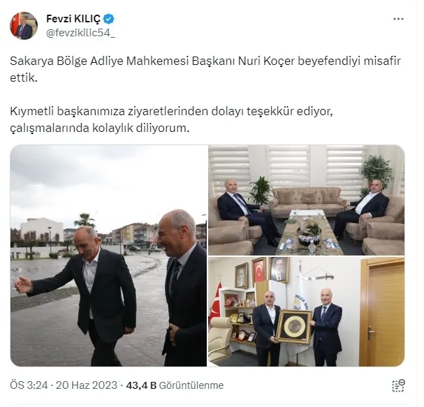 Sakarya'da, kalp krizi sonucu 59 yaşında hayatını kaybeden AK Partili merkez Erenler Belediye Başkanı Fevzi Kılıç'ın cenazesi toprağa verildi. Öte yandan Başkan Kılıç'ın, dün vefatından önce sosyal medya hesabından yaptığı son paylaşımlarda kendisine yapılan ziyaretleri anlattığı görüldü.