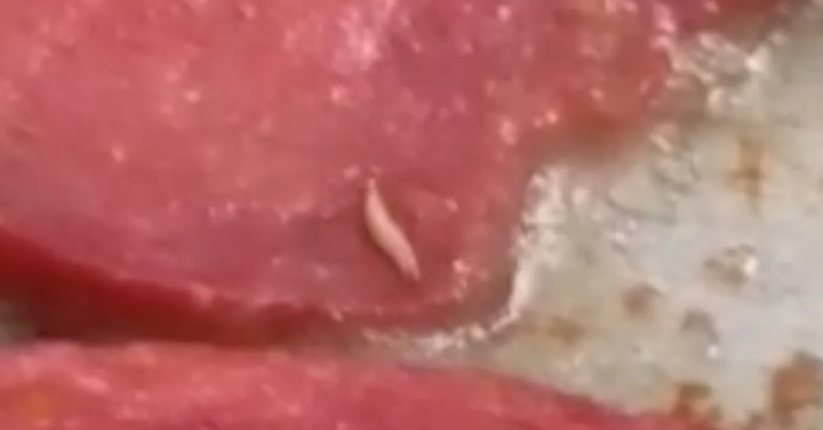 Sucukların üzerinde kurtçukların olduğunu gören vatandaş, o anları cep telefonu ile kaydetti.