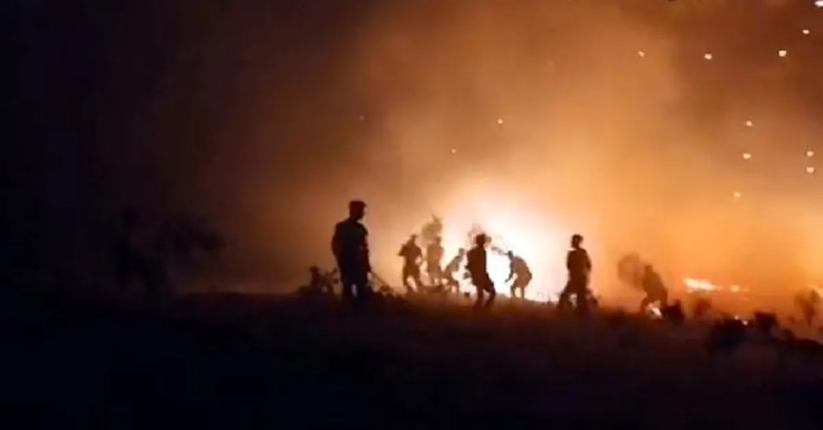 Siirt'in Şirvan ilçesine bağlı Ormanbağı köyündeki fıstık bahçesinde, gece saatlerinde yangın çıktı.