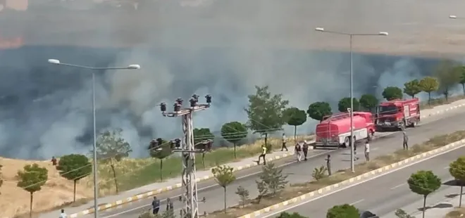 Buğday tarlasında bilinmeyen bir nedenle çıkan yangın kısa sürede büyüyerek geniş bir alana yayıldı.