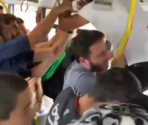 Büyüyen tartışma kavgaya dönüştü. Diğer yolcular araya girmeye çalıştı ancak şahıslar birbirine saldırmaya devam etti. Daha sonra genç yolcu, diğerine uçan tekme attı.