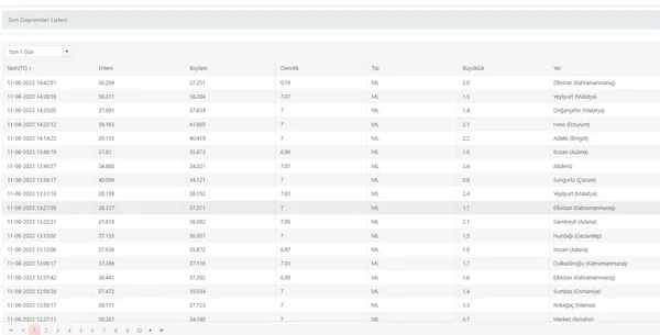 11-08-2023 13:48:19 37.62 35.873 6.96 ML 1.6 Kozan (Adana) 598537