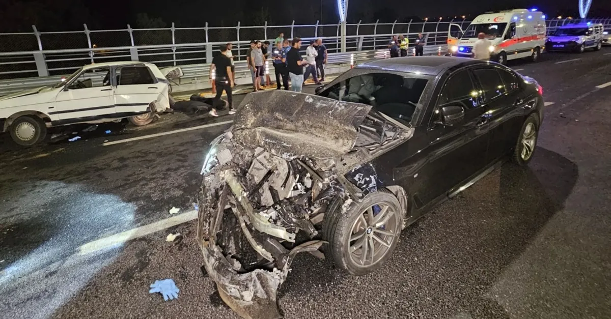 Kaza nedeniyle köprüde tek yönde kapanan trafik, iki otomobilin de çekilmesiyle yeniden açıldı.