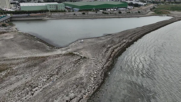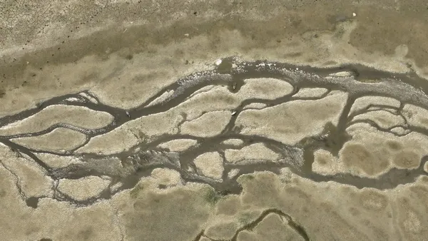 Drone ile havadan çekilen görüntülerde barajdaki su seviyesinin giderek azaldığı ve toprak kısımlarda çatlakların oluştuğu görüldü.