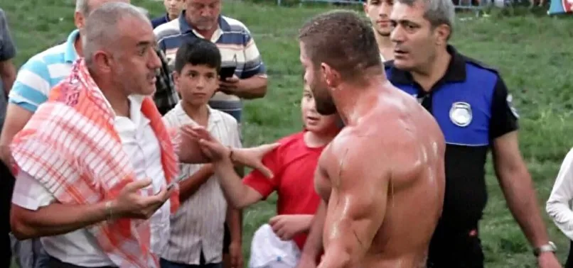 Muğla'nın Seydikemer ilçesinde düzenlenen yağlı güreşlerde rakibi Enes Doğan'ı yenip, başpehlivan olan İsmail Balaban, müsabakanın hemen ardından dinlenmeye çalışırken yanına gelip sarılarak fotoğraf çekilmek isteyen hayranı Murat Koyuncu ile tartıştı.