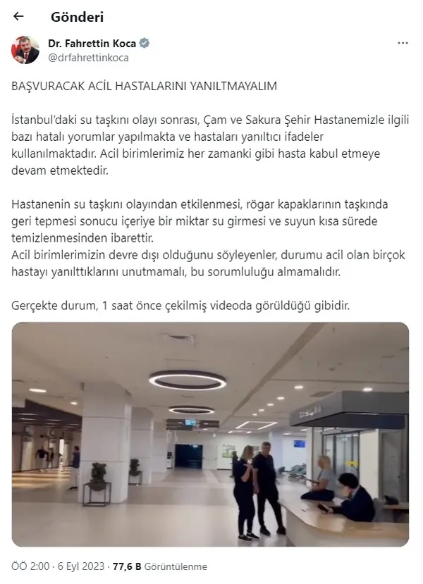 12.05 İçişleri Bakanı Ali Yerlikaya, İstanbul'da sel ve su baskınları nedeniyle 31 kişinin yaralandığını belirterek, "Bunların sadece 8'inin bu sabah itibarıyla tedavi süreçleri devam ediyor. Hayati tehlikelerinin olmadığını biliyoruz." dedi.