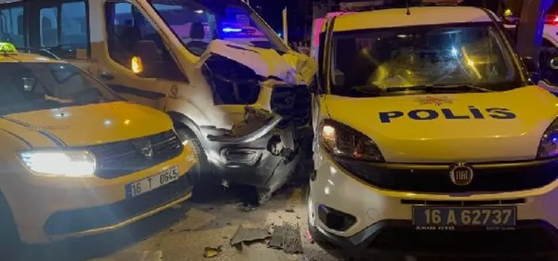 Bursa'da zincirleme kaza! Polis aracı, servis minibüsü ve taksi çarpıştı: 3'ü polis 6 yaralı