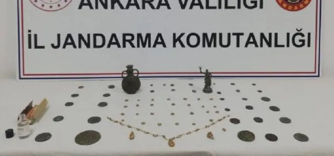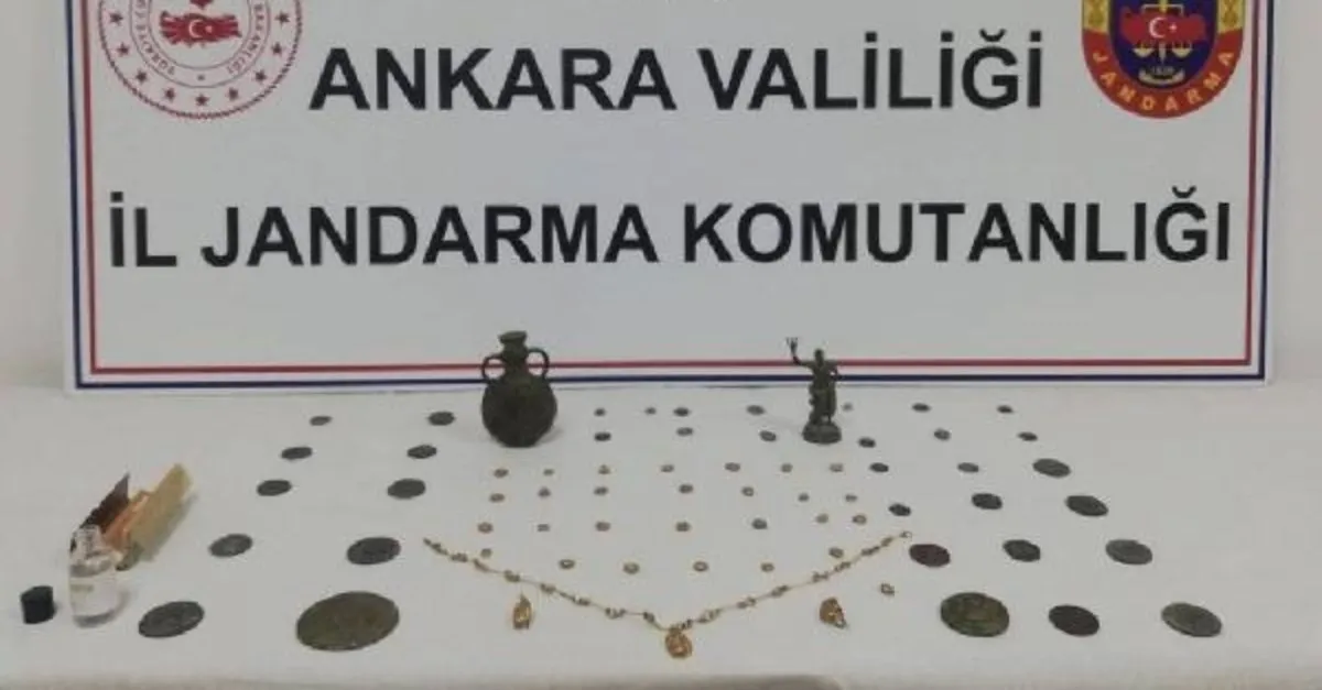 Ankara'da jandarma ekipleri, tarihi eser kaçakçılarına geçit vermedi. Düzenlenen operasyonda, Roma ve Osmanlı dönemlerine ait 63 sikke ve çeşitli tarihi eserler ele geçirildi.
