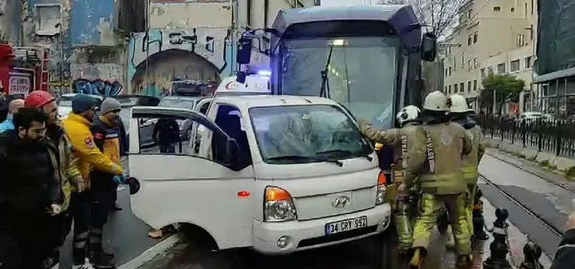 Beyoğlu Karaköy'de Kabataş-Bağcılar tramvay hattına giren kamyonete tramvay çarptı. Kamyonet içerisinde sıkışan sürücü çıkarılarak hastaneye kaldırıldı. Bir süre trafiğe kapanan yol kamyonetin çekilmesiyle normale döndü.