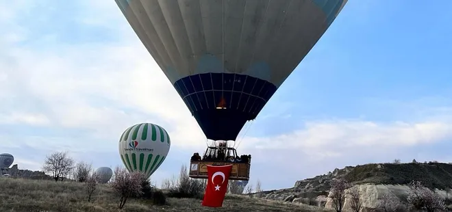Türk bayrağı taşıyan balonlar Kılıçlar ve Güllüdere vadilerinde yaklaşık bir saat boyunca uçuş gerçekleştirdi.