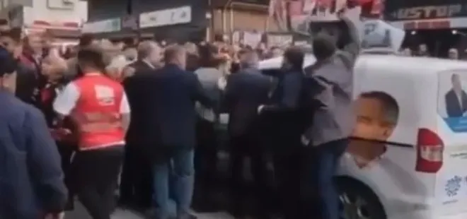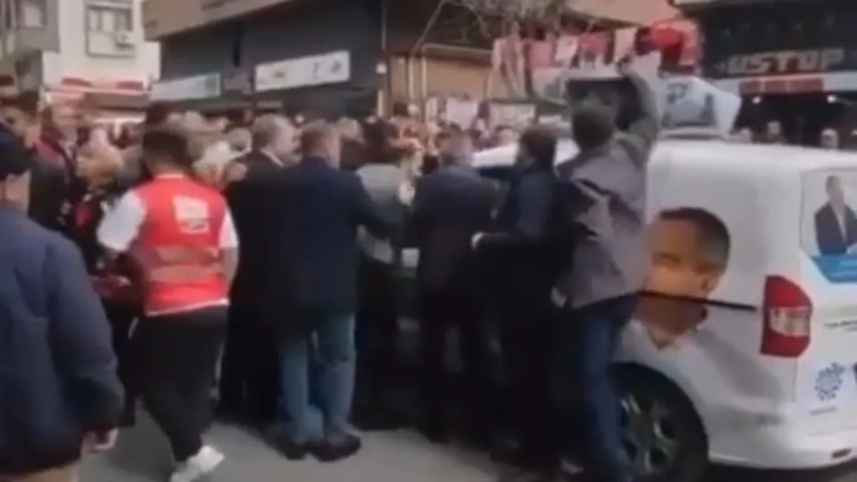 Ataşehir İçerenköy Mahallesinde CHP Ataşehir Belediye Başkan Adayı Onursal Adıgüzel'in gönüllüleri ve CHP saha çalışanları, Memleket Partisi Ataşehir Belediye Baskan Adayı Reşat Şahin Öztürk'ün aracına saldırdı.