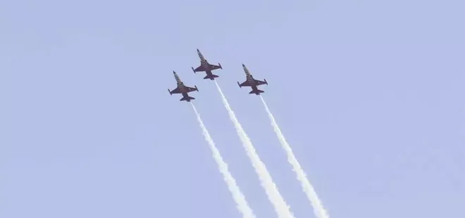 Türk Hava Kuvvetleri'ne bağlı akrobasi timi Türk Yıldızları, 23 Nisan Ulusal Egemenlik ve Çocuk Bayramı kutlamaları kapsamında Antalya'da gösteri uçuşu yaptı.