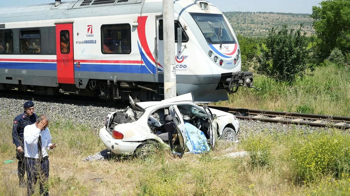 Manisa'da Uşak-İzmir arasında sefer yapan yolcu treni, hemzemin geçitte bir otomobile çarptı. Sürücü Yaşar Ercan, feci kazada hurdaya dönen araçtan sağ çıkarılamadı.