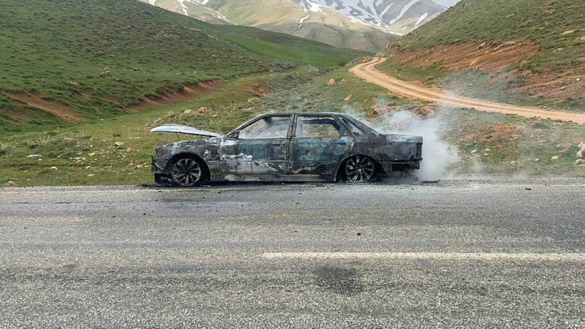 Van'ın Çatak ilçesinde seyir halindeyken alev alan otomobil kullanılamaz hale geldi.