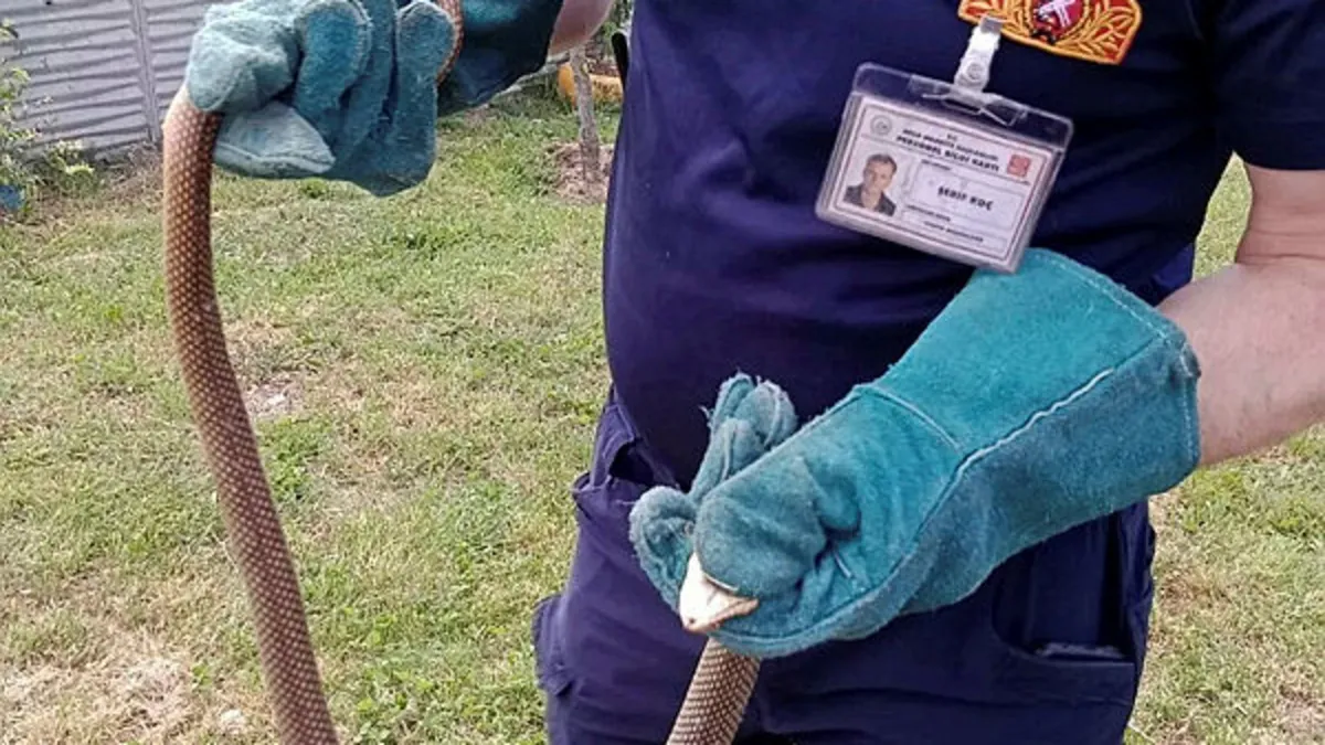 Bolu'da su vanalarının bulunduğu koruma kutusuna giren yılan, itfaiye ekipleri tarafından bulunduğu yerden çıkarılarak doğaya salındı.