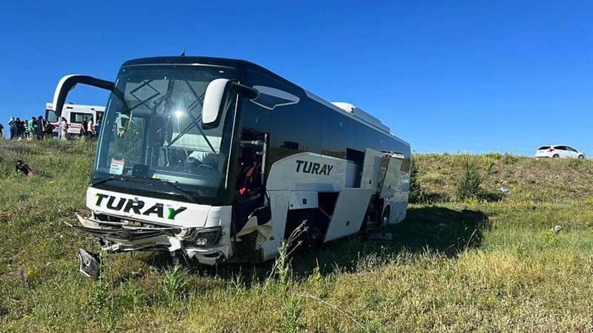 Sivas'ta yoldan çıkan bir yolcu otobüsü yol kenarında bulunan tarlaya uçtu. Kaza sırasında otobüste bulunan yolculardan 21 kişi yaralandı. Yaralıların durumunun iyi olduğu öğrenildi.