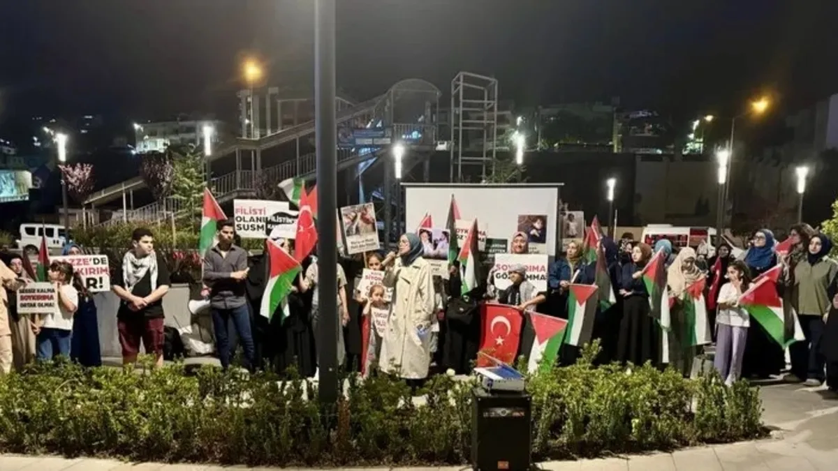 Trabzon'da bir grup, terör devleti İsrail'in Gazze'ye yönelik saldırılarına tepki gösterdi. Filistin lehine slogan atan gruptakiler, gösteriye aileleriyle katılan çocukların şiir okumasının ardından dağıldı.