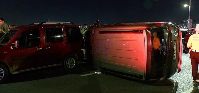 Galata Köprüsü'nde gece yarısı kaza! 2 araca çarpıp yan yattı! Yaralılar var...