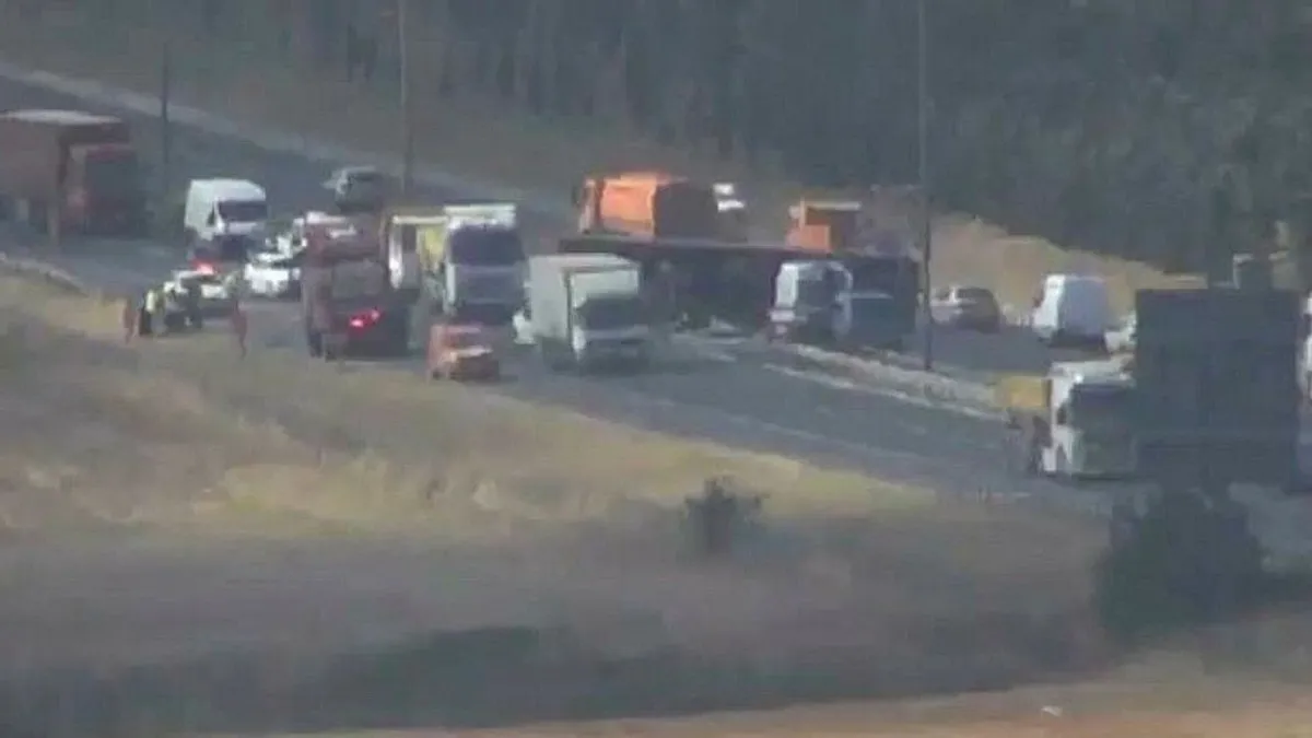 TEM'de trafiği kilitleyen kaza! Tır devrildi bir şerit ulaşıma kapandı