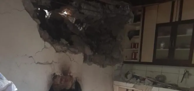 Adana'nın Aladağ ilçesinde yamaçtan kopan kaya, evin üzerine düştü.