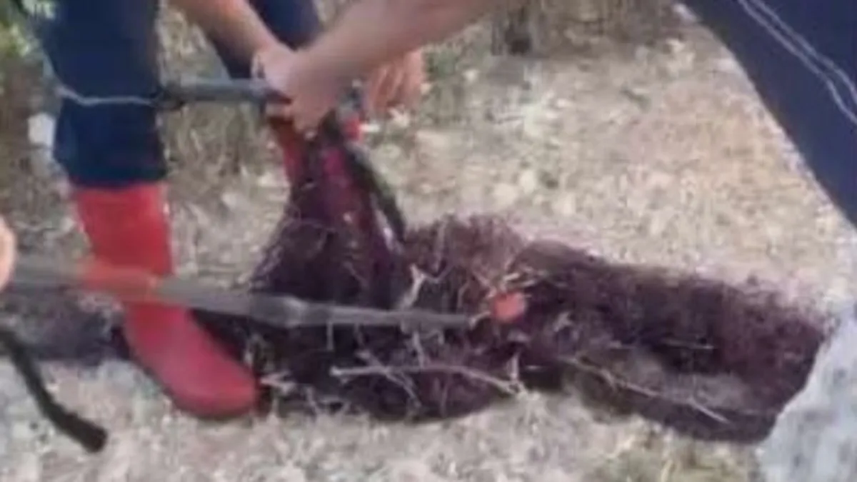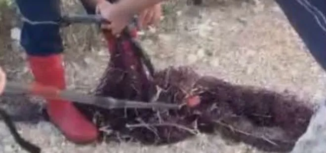 Hatay'da balık ağına takılan yılan böyle kurtarıldı