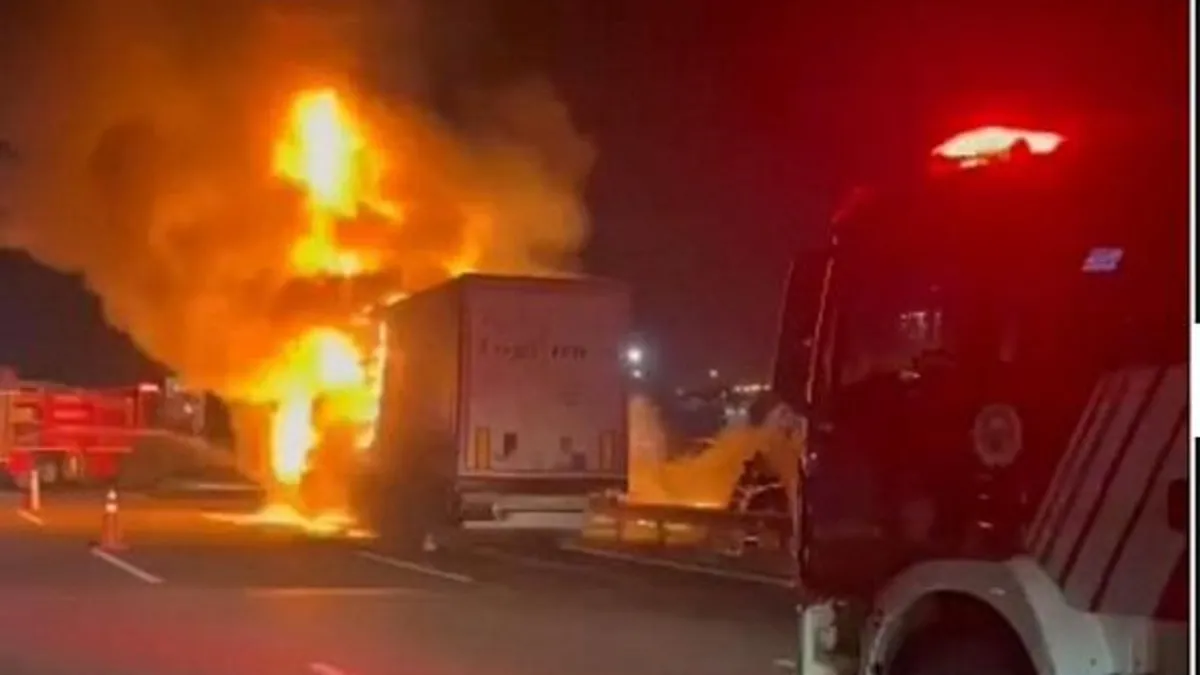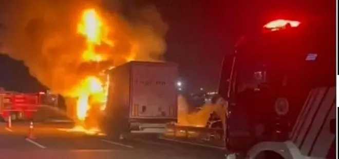 Anadolu Otoyolu'nda TIR alevlere teslim oldu! Araç kullanılamaz hale geldi