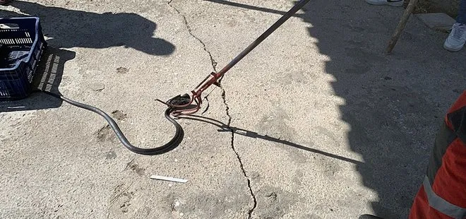 Ekipler tarafından muhafaza altına alınan yılan, yerleşim yerinden uzak bir yerde doğal yaşam alanına bırakıldı.