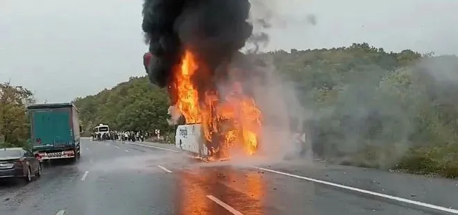 Bursa'da yolcu otobüsü alevlere teslim oldu