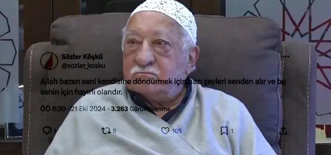 Sözler Köşkü isimli İslami yayınlar yapan hesabın X platformu üzerinden yayınladığı mesaj büyük tepki çekti. Terörist Fetullah Gülen'e methiye amaçlı olduğu anlaşılan paylaşımda "Allah bazen seni kendisine döndürmek için bazı şeyleri senden alır ve bu senin için hayırlı olandır" ifadelerine yer verildi.