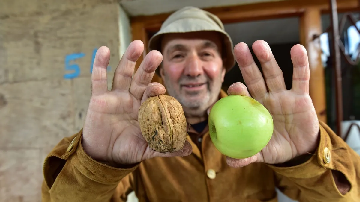 Ahlat ilçesinin Erkizan Mahallesi'nde yaşayan Musa Çiçekçioğlu'nun bahçesinde yetişen elma büyüklüğündeki cevizler görenleri hayrete düşürüyor.