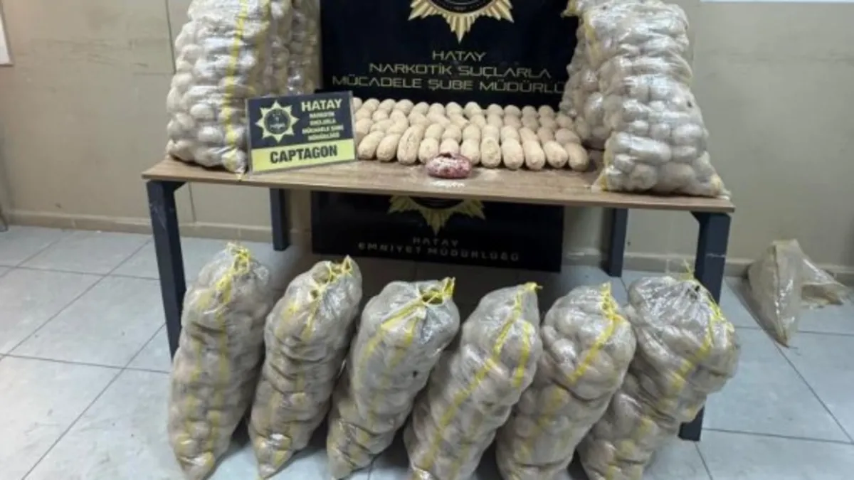 Hatay'da polis ekipleri tarafından Zeytin Dalı Harekat Kapısı'nda Suriye'den Dubai'ye gidecek olan tırda patates çuvalları içerisine gizlenmiş 380 bin adet uyuşturucu hap ele geçirildi.