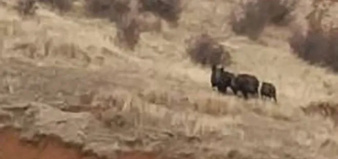 Elazığ'da dağlarda yiyecek bulamayan yaban domuzları yerleşim yerlerine inmeye başladı.