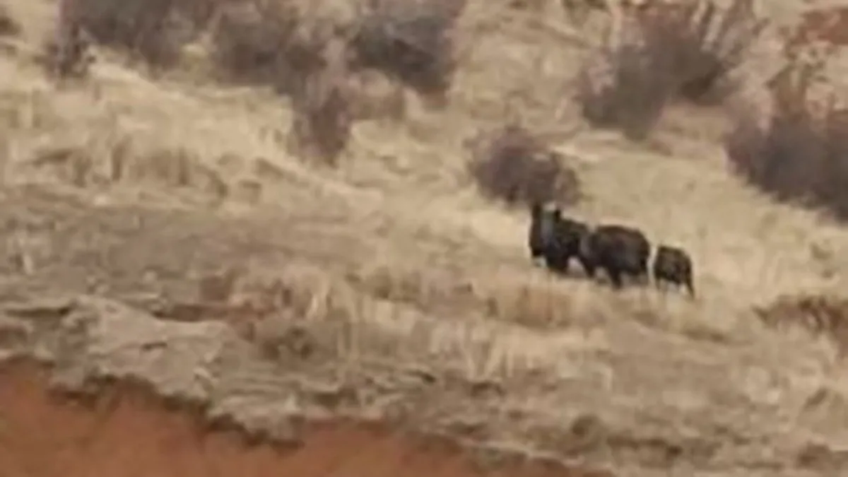 Çoban köpeği domuz sürüsünü kovaladı (İHA)
