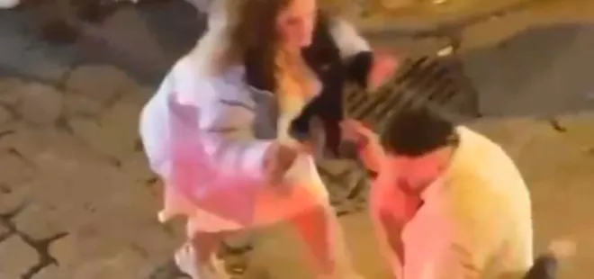 ABD'li turist Taksim'de ortalığı birbirine kattı! Önüne çıkan erkeğe saldırdı