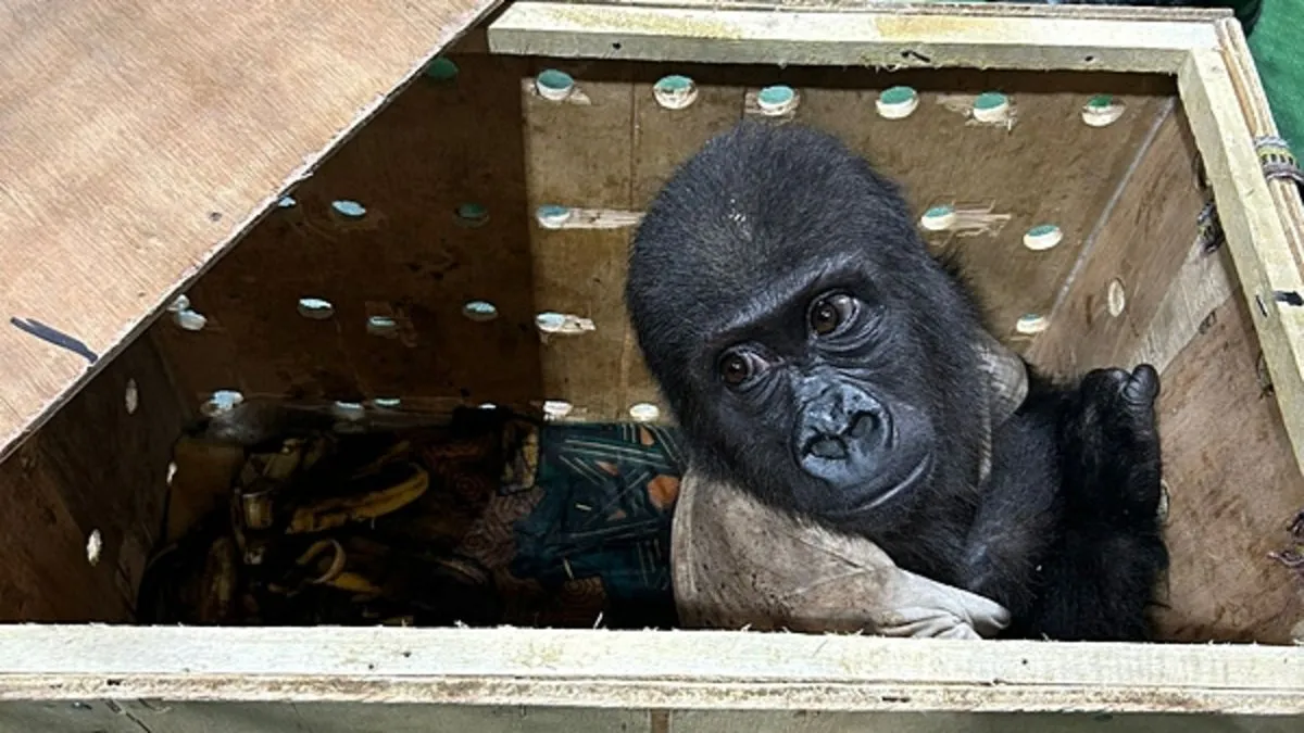 Ticaret Bakanlığı Gümrükler Muhafaza ekipleri, İstanbul Havalimanı'nda nesli tükenmek üzere olan "goril yavrusu" yakaladı.