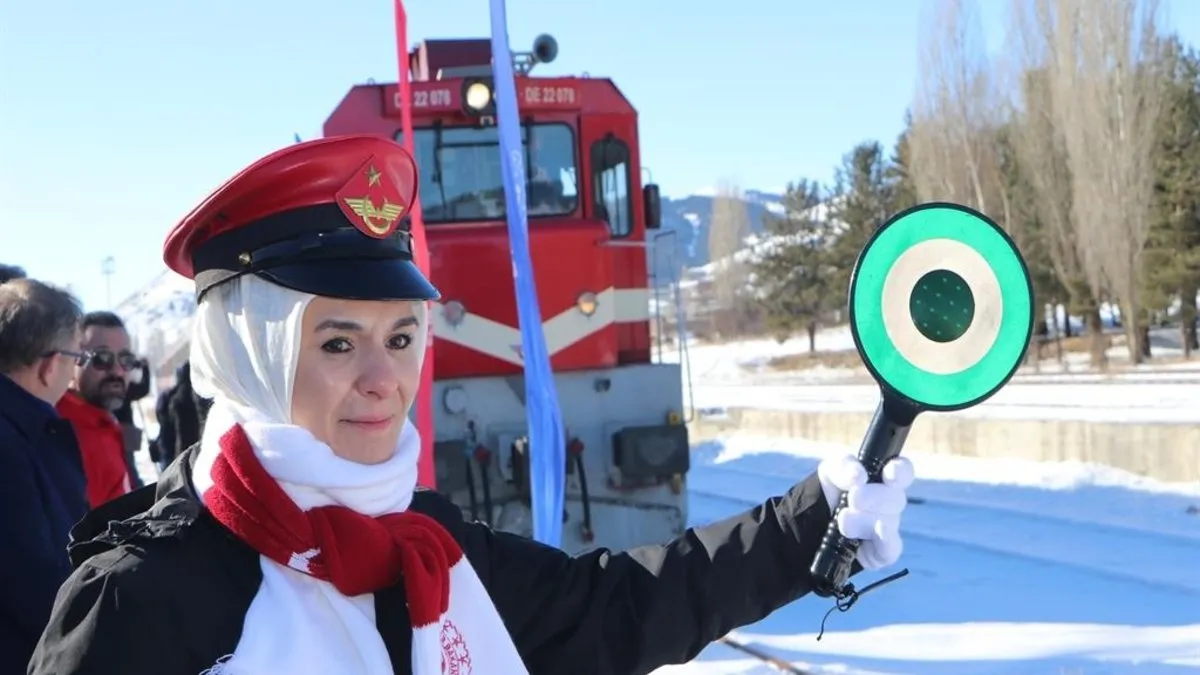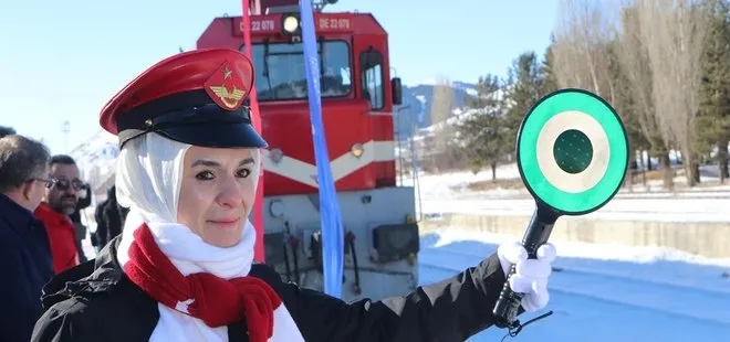 Hava sıcaklığının sıfırın altında 15 dereceye düştüğü ilçede, Aile ve Sosyal Hizmetler Bakanı Mahinur Özdemir Göktaş ve protokol üyeleri, Sarıkamış Ekspresi'ni bayraklarla karşıladı.