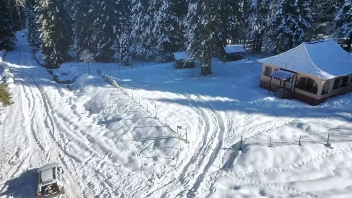 Bartın'ın yüksek kesimlerinde etkili olan kar yağışı nedeniyle yaylalarda oluşan manzara dronla görüntülendi.