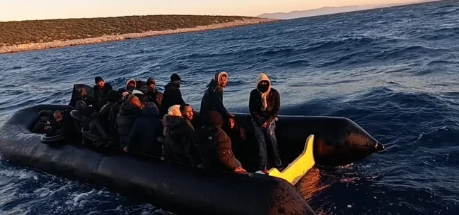 Aydın'ın Didim ilçesinde insansız hava aracı tarafından lastik bot içerisinde tespit edilen 37 düzensiz göçmen yakalandı.