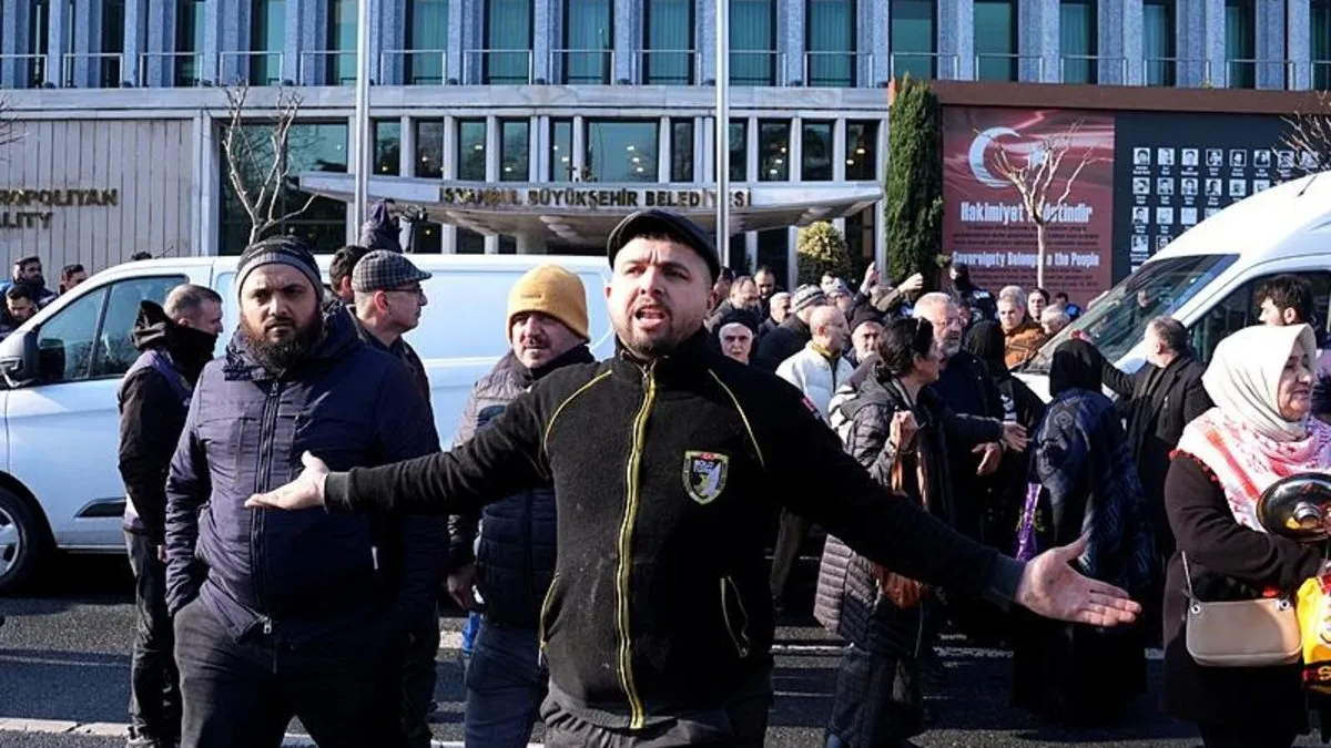 İBB'yi protesto eden grup üyeleri, mağduriyetlerinin giderilmesini talep etti.