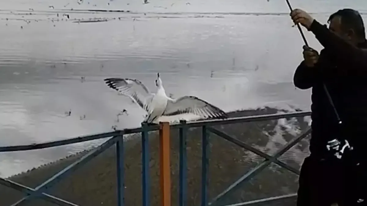 Oltasına balık yerine martı takıldı