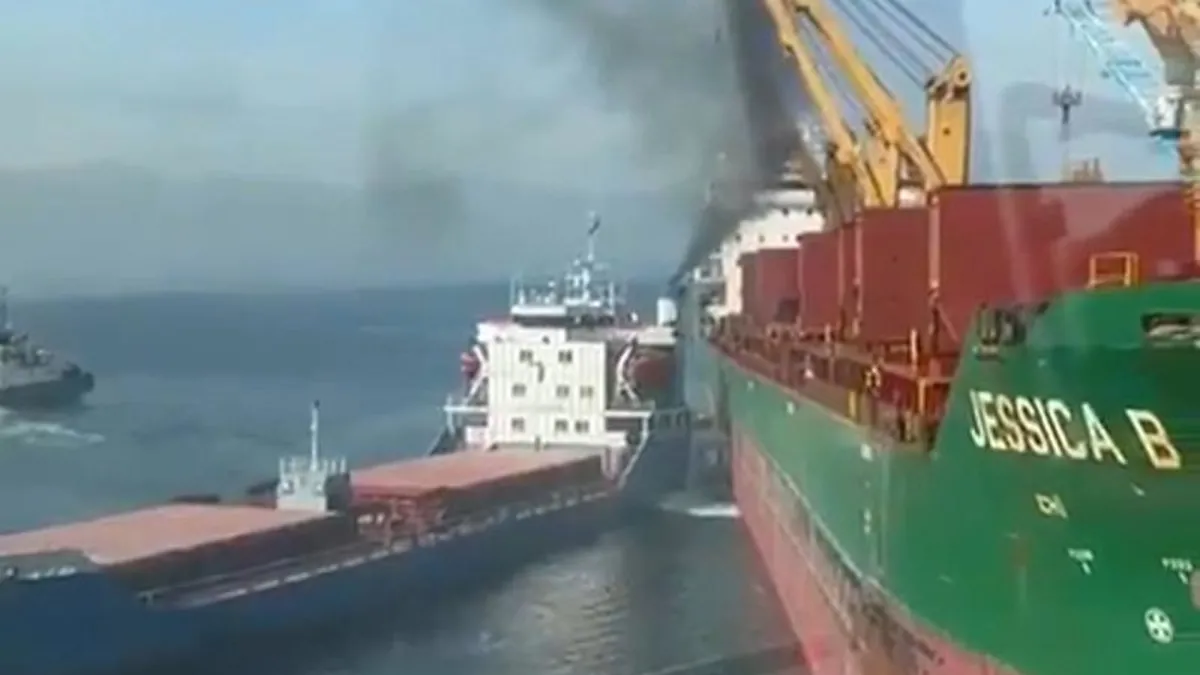Bursa'nın Gemlik ilçesindeki özel limanda 104 metre uzunluğundaki gemi, limana yaklaşma manevrası yaparken 199 metre uzunluğundaki kargo gemisine çarptı.
