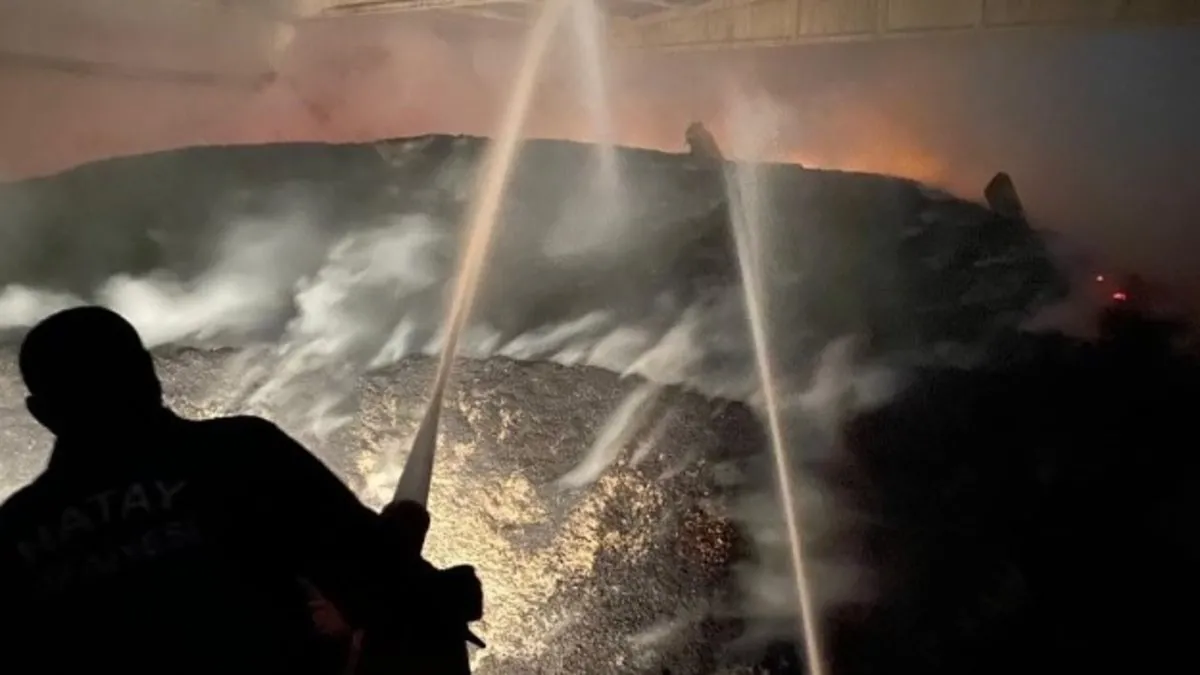 Hatay'da pamuk fabrikasının depo kısmında çıkan yangın itfaiye ekipleri tarafından söndürüldü.