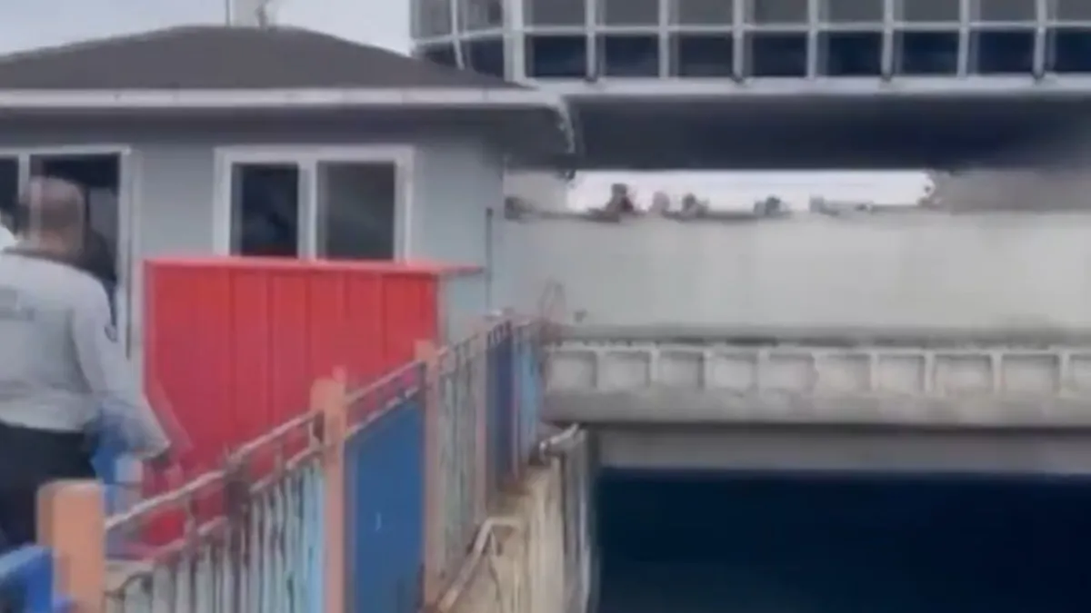 İskeleye yanaştırılan feribottaki hasar tespit çalışmaları sürüyor.