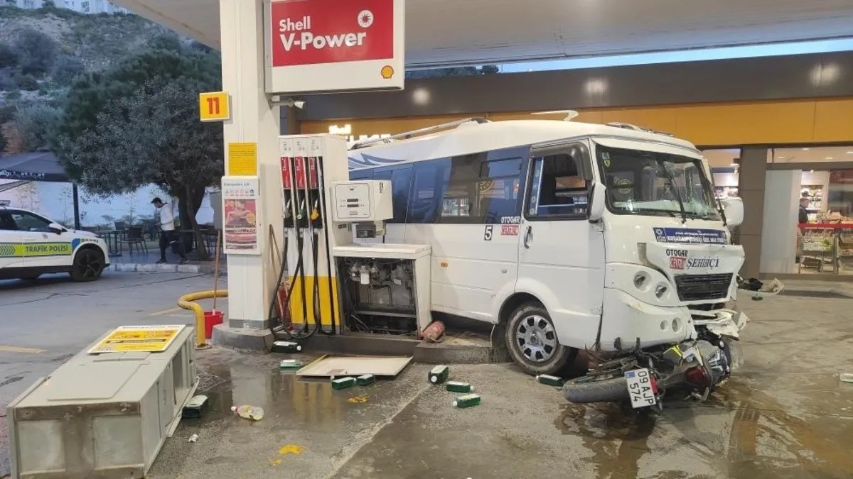 Otomobil sürücüsünün bölgeden uzaklaşmasının ardından K.L. ve etraftaki kişiler arasında yaşanan tartışma kavgaya dönüştü. K.L. kavgayı bırakıp 09 M 3573 plakalı minibüse binerek benzin istasyonuna dalıp aracını çalışanların üstüne sürdü. Minibüs, önce akaryakıt pompalarına çarptı ardından bir motosikleti altına alarak sürükledi.