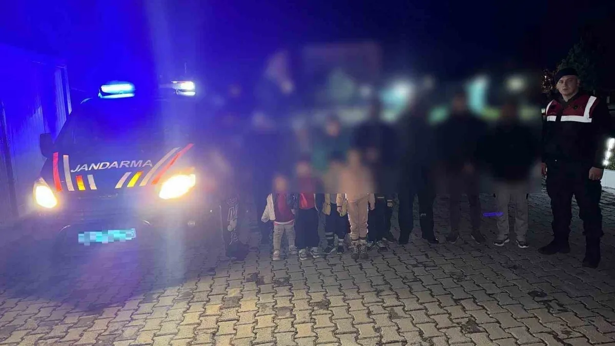 Aydın'ın Didim ilçesinde jandarma ekiplerince yapılan çalışmada 13 düzensiz göçmen ve 1 organizatör yakalandı.