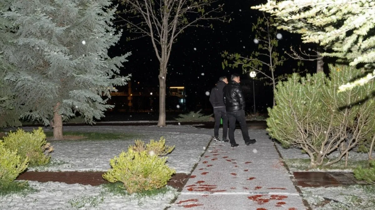 Yağış nedeniyle bazı park ve sokaklar beyaz örtüyle kaplandı.