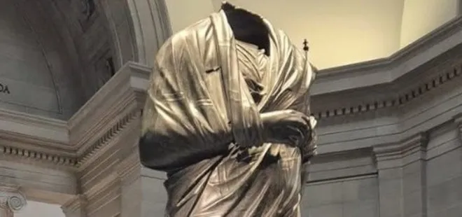 Cleveland Sanat Müzesi’nde düzenlenen törenle Türkiye’ye iade edilen Marcus Aurelius heykeli. (ahaber.com.tr)
